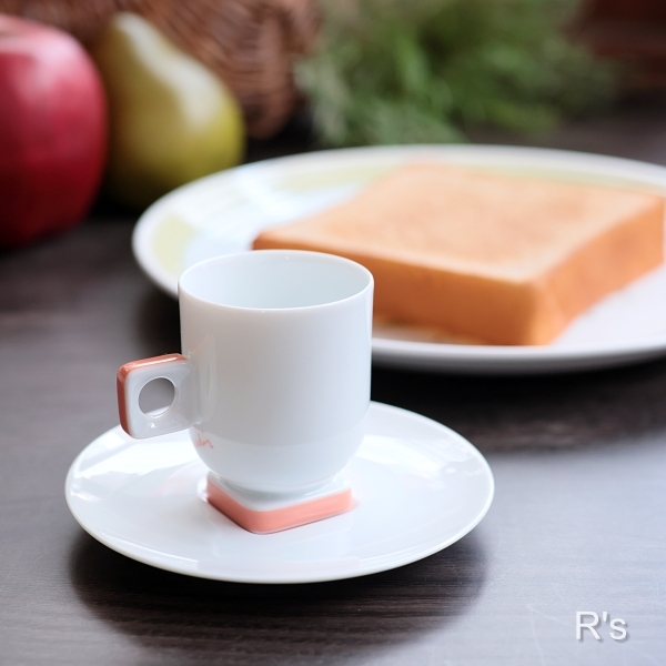 スクエアデザインもですが、持ち手を摘んだ時の感触も素敵なコーヒー碗皿です。