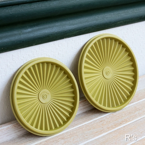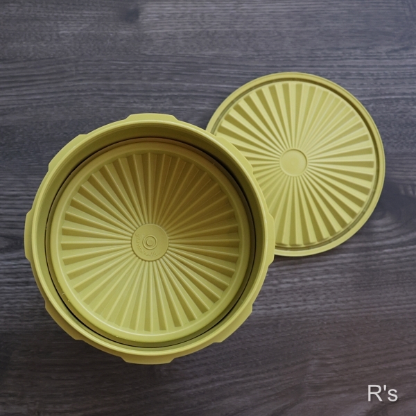 Tupperware デコレーター大小セット 柄付き 丸形保存容器 黄緑 です。