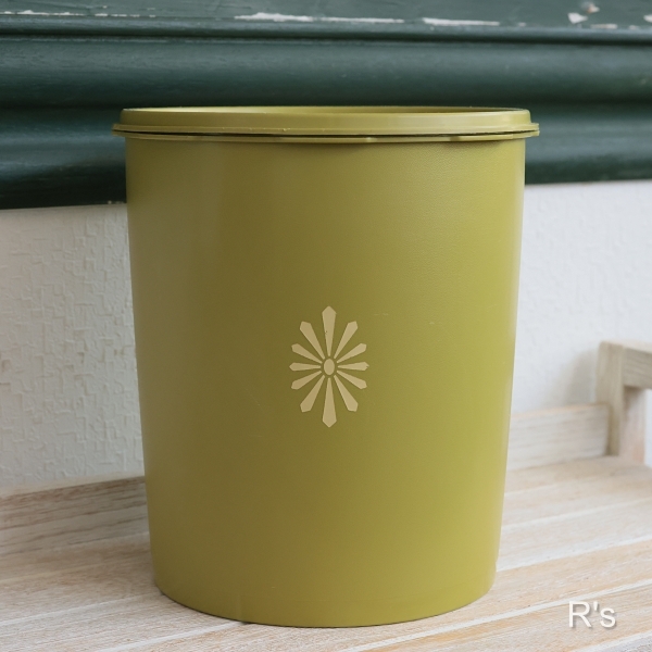 タッパーウェア デコレーター 丸型保存容器 4,000ml 柄付き オリーブグリーン ユーズド品 (TP6246)