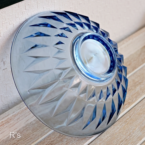 ホームガラスものレトロ 18cm ガラスボウル 盛り皿 ブルー ユーズド品