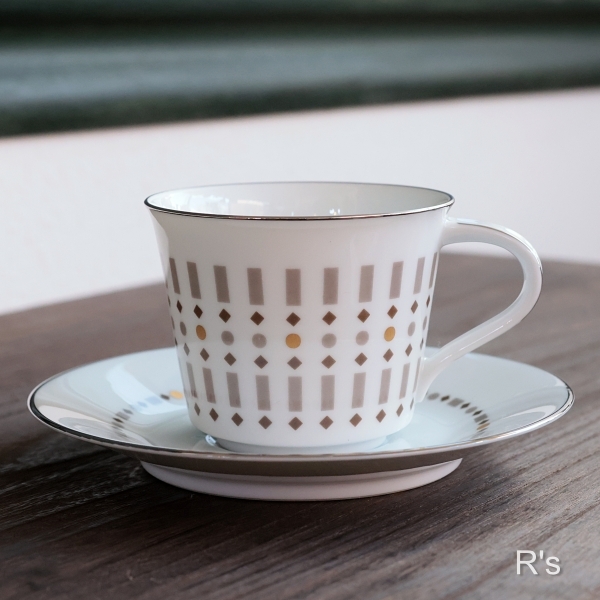 キラキラした幾何学模様がレトロでかわいいコーヒー碗皿です。