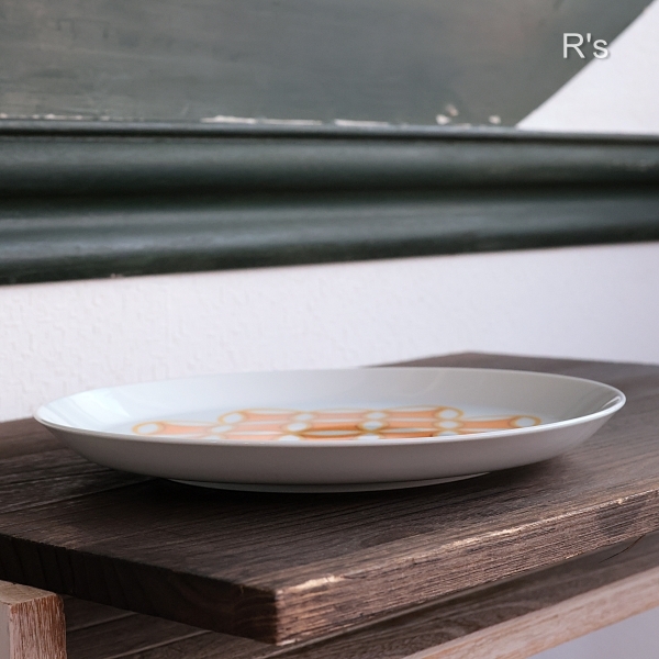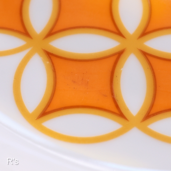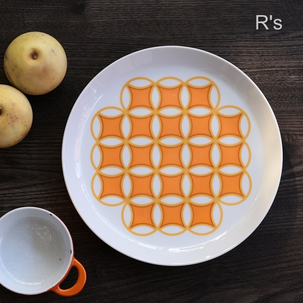 オレンジ色の鮮やかな幾何学模様がレトロでかわいいプレートです。