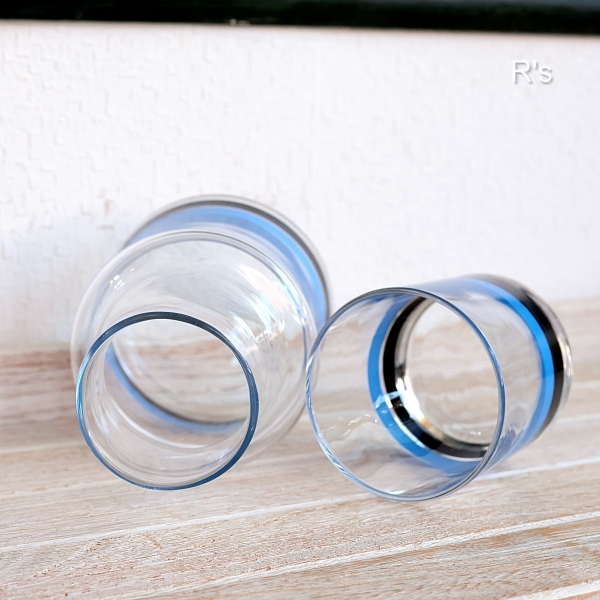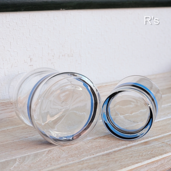 レトロ 冠水瓶 ガラスウォーターピッチャー&グラスセット 青黒 です。
