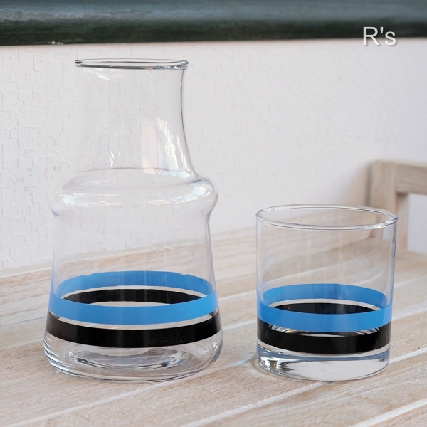 ホームガラスものレトロ 冠水瓶 ガラス ウォーターピッチャー&グラスセット ストライプ 未使用品(3B 6323)