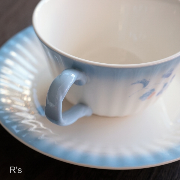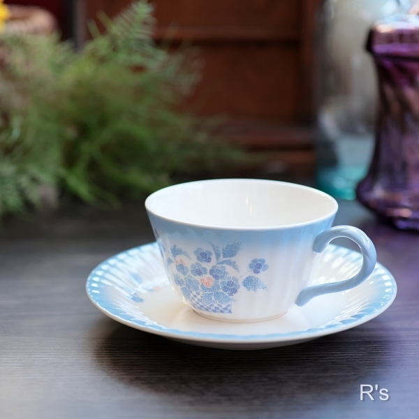 優しく淡いブルーの花柄が素敵な紅茶碗皿です。